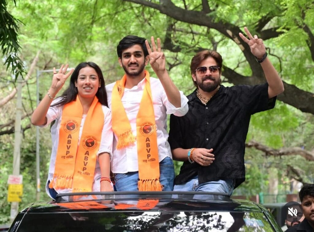 इसी तरह चुनाव प्रचार के दौरान भी आर्यन को बड़े स्तर का समर्थन मिला। बॉलीवुड के मशहूर अभिनेता संजय दत्त, रणदीप हुड्डा और भोजपुरी स्टार रवि किशन ने उनके समर्थन में अपील की। वहीं हरियाणवी सिंगर मासूम शर्मा खुद प्रचार में सक्रिय नजर आए। इससे यह साफ झलकता है कि आर्यन की कैंपेनिंग केवल छात्र राजनीति तक सीमित नहीं रही, बल्कि फिल्मी दुनिया से लेकर समाज के अलग-अलग वर्गों तक उसकी गूंज रही।